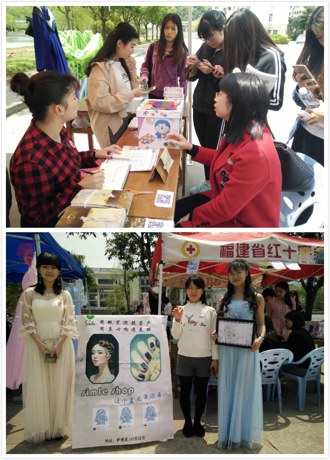 Smile shop是由医学美容专业学生自主创办的创业项目。在创办初期得到学校领导的大力支持,现今已创办2年之久。项目以生活美容为主,如护肤(脸部按摩护理,)美体(肾部保养,腹部减肥)美甲(光疗甲)美妆(舞台妆,生活妆,摄影妆等),还有医美项目,冰点脱毛,激光点痣,红蓝光治疗仪等。创办此项目的目的是为了体现医美专业学生的价值,将课堂学到的美容手法与技能,应用到实际生活中。使大家更多的了解美容这个行业,也让我们的生活变得更加的丰富。