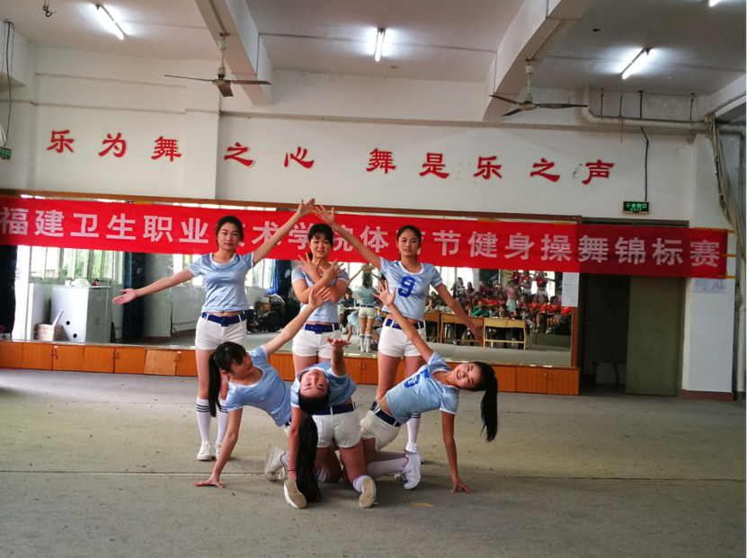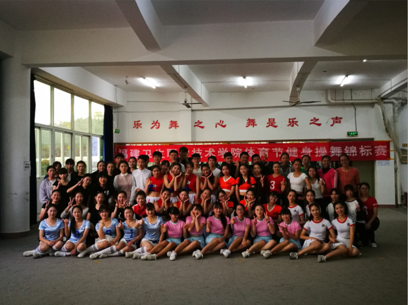 12月13日下午,由学院体育教研室、学生工作处、团委以及各系部主办的2016年福建卫生职业技术学院健美操舞锦标赛在明湖三楼举办。体育教研室黄跃老师、邓素华老师、刘丽萍老师、胡丽芳老师、李通老师,学工处董东老师,院团委林秋琼老师担任本次比赛评委。