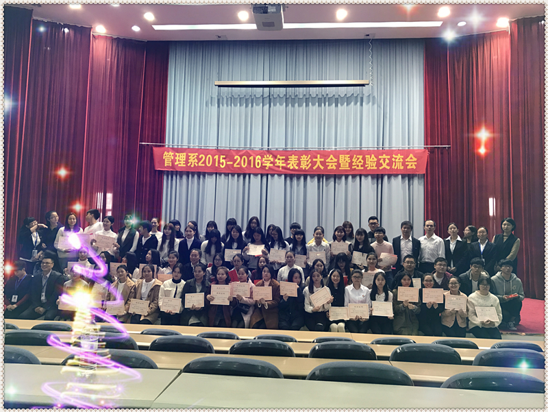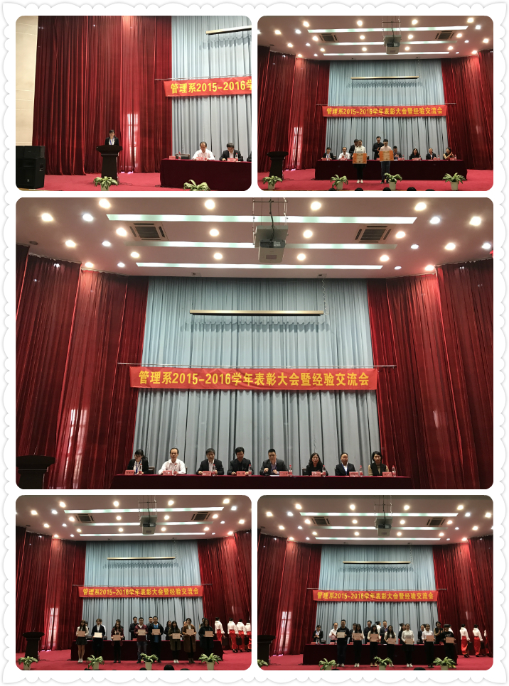 2017年1月7日下午1点,管理系在学术厅召开2015-2016学年表彰大会暨经验交流会。此次到场的嘉宾有学生工作处叶海处长、管理系党总支艾松军副书记、庄海林副主任、办公室黄兴宇主任、计算机教研组陈远怀主任、预防医学教研组揭金花主任、营养与美容教研组吴晶主任,团总支副书记冯瑞华老师系部分教职工及全体学生出席。本次表彰大会由艾松军副书记主持。