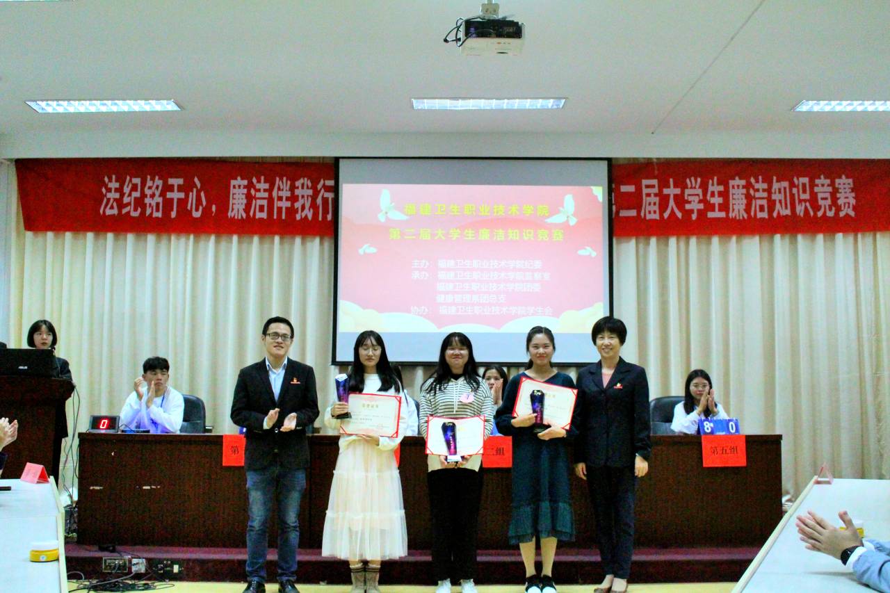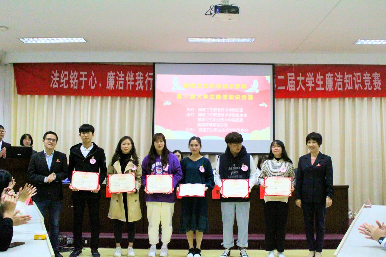 为深入弘扬廉洁文化,普及廉洁知识,永葆廉洁自律之心,扬青年正气,树廉洁新风。在12月9日“国际反腐败日”来临之际,由学院纪委、团委主办、健康管理系团总支承办的第二届大学生廉洁知识竞赛于11月28日下午6:30在行政楼六楼会议室举行。比赛特邀学院纪委副书记、纪检监察室主任程剑芬老师、院团委书记黄曦老师、纪检监察室杨金城老师担任评委及指导。莅临活动现场的还有:护理系团总支书记李宝珠老师、团总支副书记林飞准老师、团总支副书记张龙老师、药学系团总支副书记胡丹老师、医学技术系团总支书记曾庆才老师、临床医学系团总支书记陈清清老师、健康管理系团总支书记冯瑞华老师、健康管理系团总支副书记赵茜老师。