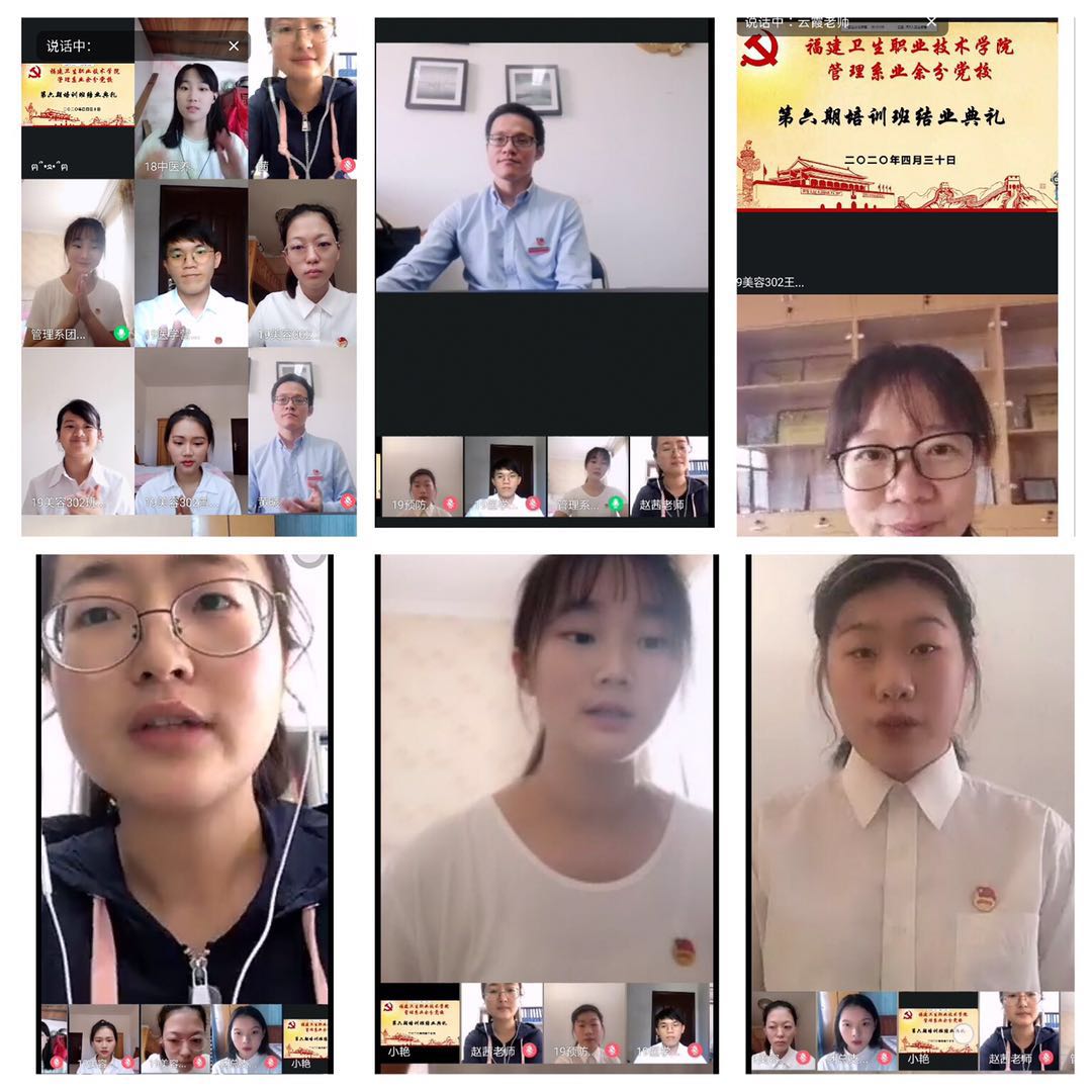 在院党委的正确领导下和管理系党总支、党支部的大力支持以及全体学员的共同努力下,在疫情期间管理系线上于2020年4月30日12:30举行管理系第六期业余分党校结业典礼。参加此次结业典礼的领导有管理系党总支黄曦书记,管理系党总支专职组织员张云霞老师,管理系团总支书记赵茜老师以及第六期分党校筹备组的系团总支委员们和本期124名分党校学员。