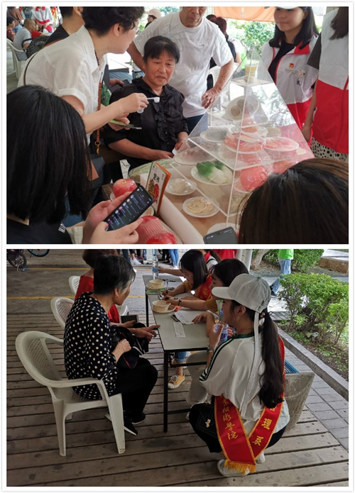 为了强化对社区居民日常膳食的指导,此次活动还进行了有奖互动环节及营养调查环节。有奖环节,参与者随机抽取问题并作答即可获得精美纪念品。营养调查环节,老师与志愿者们通过与社区居民交流,了解其日常膳食情况,发现问题,并针对实际情况,给予正确的膳食指导。