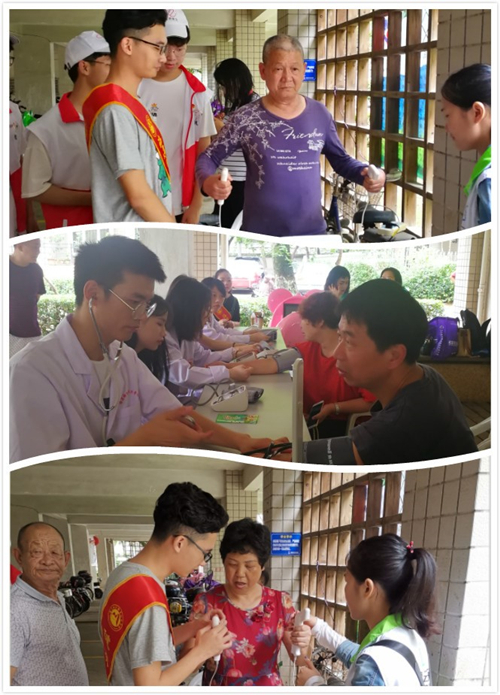 义诊环节,志愿者们免费为社区居民测量血压,指导使用人体成分分析仪并提供营养咨询服务,认真解答社区居民的问题。