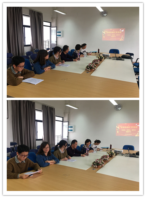 最后,支部书记邱麟老师对支部党员教师提出,党员及老师坚持用习近平新时代中国特色社会主义思想武装干部头脑,增强信心,增进、自觉,鼓舞、斗志;党员老师应担当作为、干事创业。党员老师为榜样教育引导广大教师深刻领会新时代、新思想、新矛盾、新目标提出的新要求,以时不我待、只争朝夕、勇立潮头的历史担当,努力改革创新、攻坚克难,不断锐意进取、担当作为。