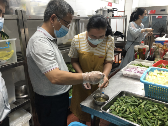 为贯彻落实习近平总书记对食品安全工作的重要指示精神,加强学院食品安全工作,守护“舌尖上的安全”,保障学校师生的身体健康和生命安全,9月17日,管理系第一党支部联合院直机关党总支第三党支部对第一食堂、第二食堂蔬菜和食用油开展质量检测。学院党委委员、副院长陈贞健也参与了此次活动。