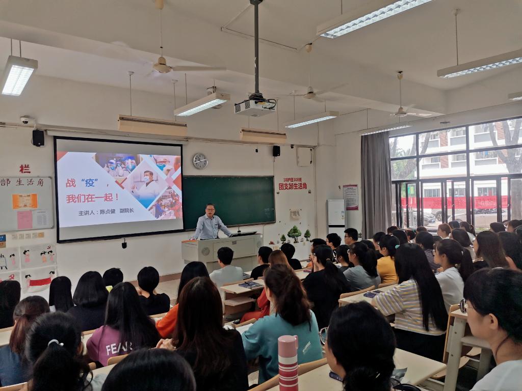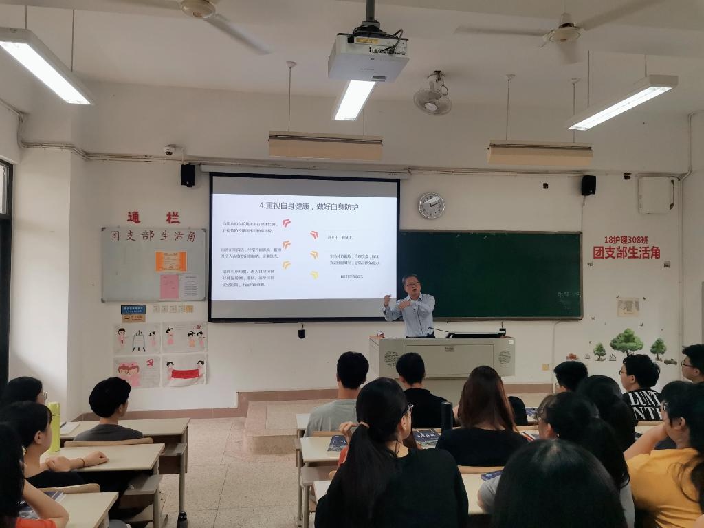 9月22日上午,学院领导在教学楼115为学生讲授返校第一课《战疫,我们在一起》。本次返校第一课由党委委员、副院长陈贞健主讲,管理系2019级健康管理专业学生参加现场授课。