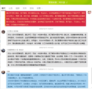 2020年10月15日,管理系第二党支部全体党员利用网络资源学习四史中的《新中国史》。学习完毕,党员们纷纷发表自己的心得体会。
