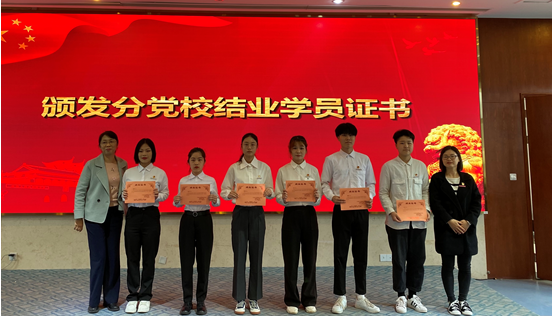 秉持初心,坚守初心,锤炼初心。仪式的第二个环节,系党总支吴燕玲副书记宣读健康管理系业余分党校第七期结业学生名单,本期学员代表上台领取结业证书,健康管理系党总支第一支部吴明书记、第二支部冯瑞华书记为学生代表颁发结业证书。