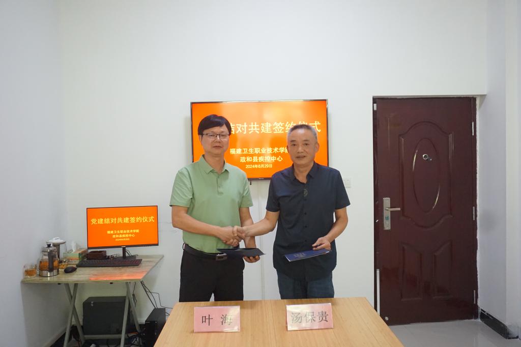6月29日,公共卫生与健康管理学院党委与政和县疾控中心党支部党建结对共建签约仪式在县疾控中心会议室举行。县疾控中心主任陈财、党支部书记汤保贵、学院党委书记叶海、院长庄海林、专职组织员许晓湖等参与活动。