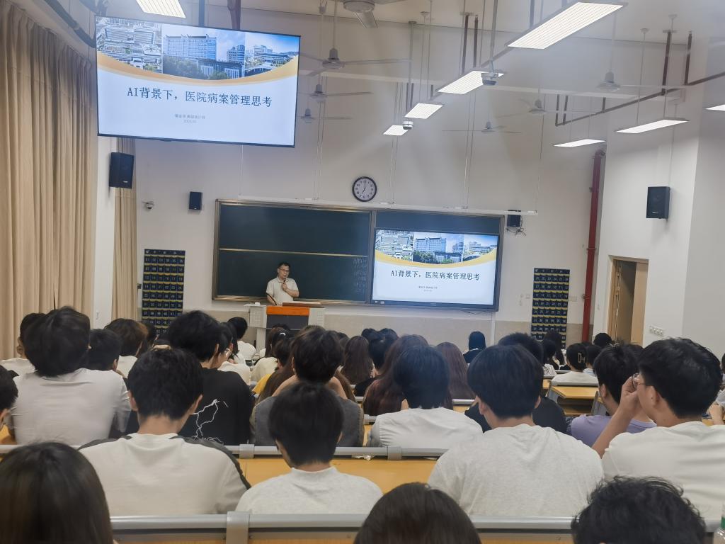 讲座中,曾金浪详细阐述了病案管理的现状和未来的思考,包括认识”AI”、病案管理概述、“AI”背景下,病案管理机会与挑战以及“应对思考”。强调,AI在病案管理中的应用以及人才专业技能要求,希望同学们能够勇于面对挑战,提升人工智能应用方面的专业技能和专业素养,增强职场竞争力。