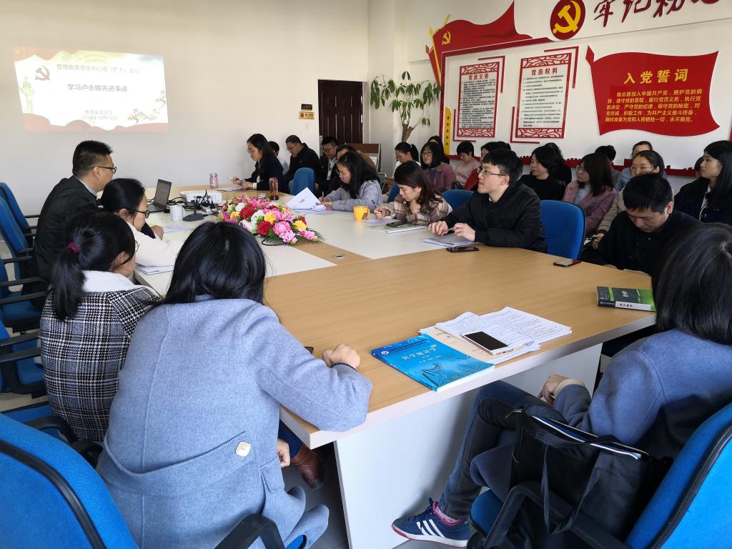 12月12日下午,管理系党总支召开中心组学习(扩大)会议,学习“时代楷模”卢永根先进事迹,总结学习《中国共产党宣传工作条例》。会议由管理系党总支书记艾松军同志主持。