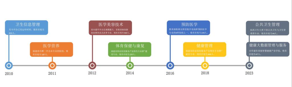 公共卫生与健康管理学院(简称健康学院)由原健康管理系2023年更名,成立于2016年,主要围绕大健康产业需求,培养健康服务领域的高素质技术技能型人才,培养健康产业的创新创业人才。现设有预防医学、公共卫生管理、卫生信息管理、健康大数据管理与服务、健康管理、医学营养、体育保健与康复、医学美容技术等8个专业,在校生达2000余人。为服务国家政策和行业企业的需求,学院创新多元化人才培养模式,近年先后与福建福能总医院、建瓯市立医院、福州爱美尔医疗美容门诊有限公司、福清市妇幼保健院、福建元瑞信息科技有限公司等举办校企合作班,与福建经济学校、闽侯县职业中专学校、连江职业中专学校等联办“三二分段制”高职班。