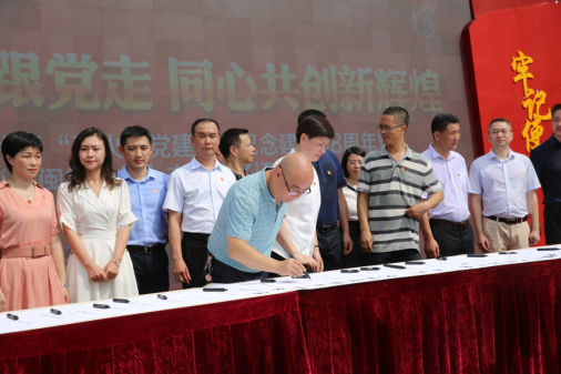 活动现场,学院党委曾武祈书记作为学院代表,同“薪火”党建联盟单位代表共同推杆,为本次活动开幕。据悉,福州火车站片区“薪火”党建联盟旨在搭建平等交流、共商共议、资源共享的平台,形成区域统筹、条块协同、上下联动、共建共享的城市基层党建工作新格局。我院医学技术系党总支负责人邱滚忠副书记作为基层党组织参建代表,在象征着传承的卷轴上签字。至此,医学技术系党总支正式成为福州火车站片区“薪火”党建联盟的一员。