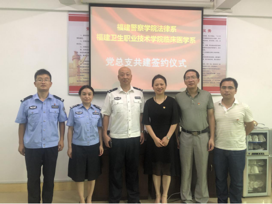 随后,临床医学系党总支负责人陈俊颖副书记和福建警察学院法律系吴文平书记共同签署了党建共建协议书。