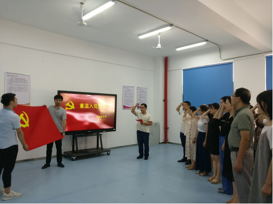 活动由党总支负责人陈俊颖副书记主持,在庄严的国歌声后,全体党员一起观看了为庆祝党的98岁生日而倾情创作的献礼短片《我宣誓——》,视频展现一代又一代优秀中国共产党人不忘初心、牢记使命的政治本色和为人民为国家为民族赴汤蹈火、无私奉献的高尚情操。