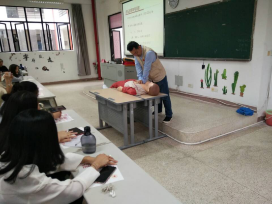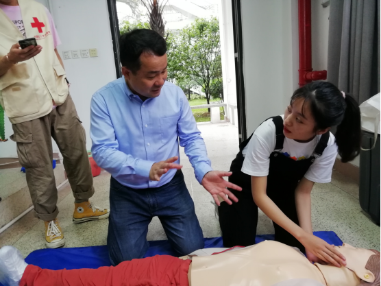 讲座结束后,郑明华老师专门为我院红十字学生分会的志愿者手把手指导了心肺复苏技能的讲解技巧和推广方法,规范志愿者们的每一步操作,为急救培训部的志愿者准确有效地推广心肺复苏术打下坚实的基础。