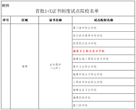 日前,教育部职业技术教育中心研究所正式公布《首批1+X证书制度试点院校名单》,我院护理系申请的老年照护证书名列其中。