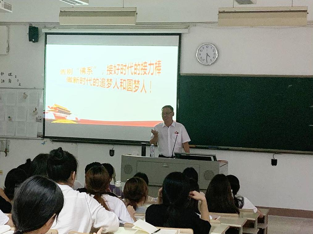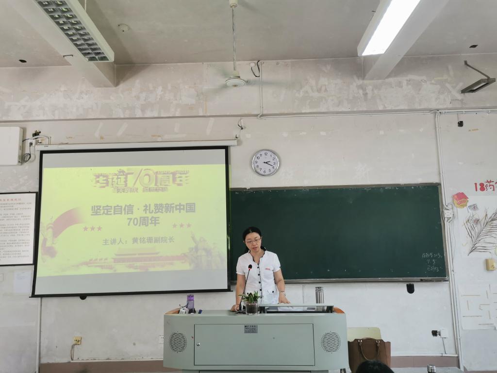 课堂讲解了中华民族从站起来到富起来,再到强起来的历史征程,围绕“坚定自信”,从“回望过去”“立足当下”“翘首未来”三个方面全面阐述了新中国成立七十周年的震撼式发展。通过列举大量国际国内时事,向同学们生动讲解了党的十九大以来国家和党的建设的显著发展,院领导以各自丰富的人生经历,向学生们讲述了新时代中国的巨大成就以及人民群众生活翻天覆地的变化。激励同学们告别“佛系”,树立远大理想,锤炼品德修为,练就过硬本领,担当时代责任,做新时代的追梦人。