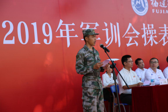 陈贞健副院长代表学院讲话,他表示军训锻炼的是身体,磨炼的是意志,训练的是作风,熔铸的是理想,高扬的是精神。他对新同学们提出了三点希望,希望同学们增强国防观念,牢固树立国家安全意识,自觉关注世界局势,学习军事知识,主动了解国防、关心国防;加强体育锻炼,保持身心健康,不断提升自身身体素质;巩固军训成果,把军训中形成的好思想、好作风要融入到学习、生活和实践中,刻苦钻研、奋发有为,努力成为一名优秀的医药卫生人才。