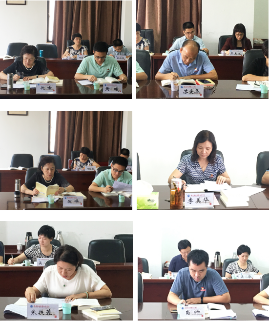 会上,团委书记黄曦和保卫处处长苏爱华共同诵读《习近平关于“不忘初心、牢记使命”重要论述选编》中的《领导干部要在改进作风上发挥示范作用》,科研处处长倪峰同志诵读《习近平新时代中国特色社会主义思想学习纲要》中的第三节《群众路线是党的生命线和根本工作路线》。党委副书记李美华、教务处处长朱扶蓉、财务处处长肖帅三位同志畅谈学习心得体会。
