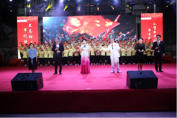 院关工委领导严肃主任也出席活动,并与5位演职人员上台共同唱响《我和我的祖国》。在他们的带动下,全场起立,800人共同挥舞手中的国旗,唱出心中对祖国的无限深情,歌声响彻学院上空。