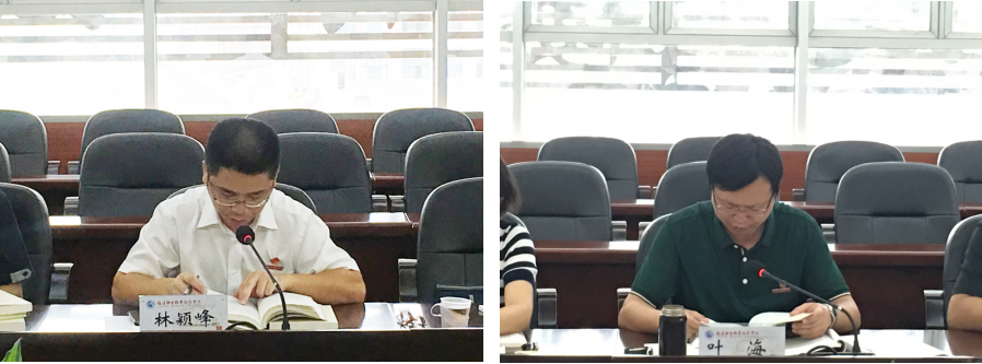 会上,现代技术教育中心主任林颖峰、学院办公室主任叶海同志先后诵读《习近平关于“不忘初心、牢记使命”重要论述选编》中的《加强纪律建设,把守纪律讲规矩摆在更加重要的位置》,教务处处长朱扶蓉同志诵读《中国共产党党内重要法规汇编》中的《中国共产党问责条例》。学院纪委书记游锋、纪检监察室主任程剑芬两位同志畅谈学习心得体会。