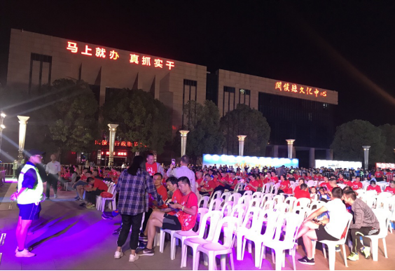 在志愿者的帮助下,现场已准备就绪,夜跑即将拉开帷幕。