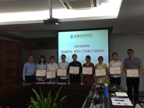 10月22日,学工处在行政楼4楼会议室举办2018-2019学年星级辅导员、辅导员工作积极分子颁奖仪式。陈贞健副校长、学工处、以及专兼职辅导员近60人参加了颁奖仪式。陈贞健副校长为获得学年星级辅导员荣誉称号的优秀专职辅导员和获得辅导员工作积极分子称号的优秀兼职辅导员颁奖。