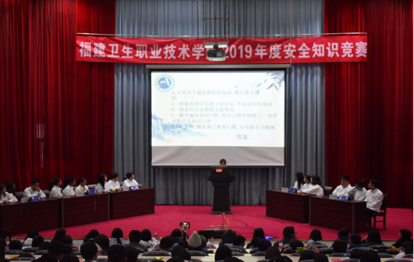 开场一首宿舍违禁品版《带你去旅行》音乐响起,在让同学们认识到宿舍违禁品危险性的同时,也拉开了本次竞赛的帷幕。此次竞赛以“提升安全素质 共创安全卫院”为主题,设置了单枪匹马、同心协力、谁与争锋、铤而走险、一站到底五个环节,环环相扣,精彩纷呈。各参赛选手精神饱满,势在必得,尤其是在“谁与争锋”抢答竞答环节中,选手们争分夺秒,现场气氛既紧张又活跃。