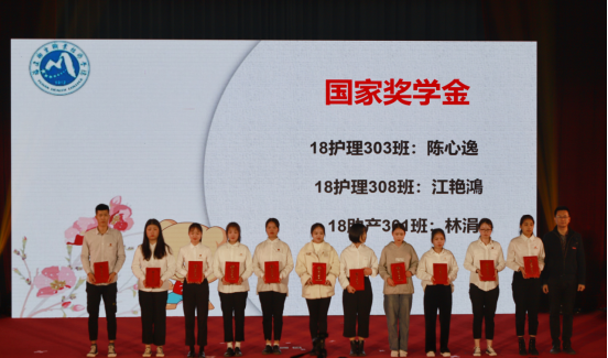 晚会以学生工作表彰大会拉开帷幕,2019年中,我校一批学生和辅导员老师在国家奖学金、国家励志奖学金、2019级新生《学生手册》知识竞赛等各项学生工作中表现突出,获得佳绩,校领导陈贞健、黄铭珊和相关部门领导为他们一一颁奖。