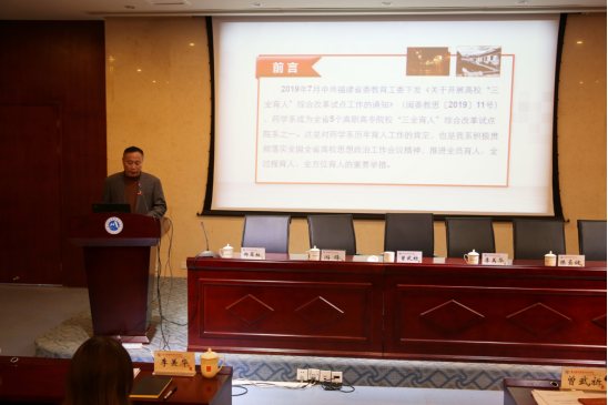 会上,药学系党总支书记郑力宏、医学技术系教师雷娟娟、临床医学系教师林丹丹就二级院系“三全育人”综合改革试点工作开展和课程思政优秀教学案例依次做了题为《文化润杏林,大医育芳华——构建以“杏林文化”为主体的“三全育人”工作体系》《将思政元素融入<微生物与免疫学>课程教学的探索》和《中医类别课程思政建设心得与思考》的经验交流。他们从不同角度分享了思想政治工作的做法,各有特色,相互启发。