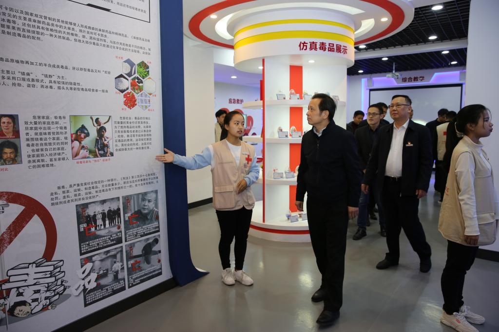 座谈会后,吴伟平副厅长一行先后考察了学校综合门诊部、中药标本馆、学生创新创业基地、红十字生命体验馆和学生食堂等地,听取了相关负责人的情况介绍,现场了解了学校疾病预防、医疗保健、应急救护、禁毒防艾教育、食品卫生安全等情况。