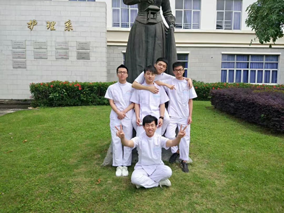 护理系馆前的阳光男孩詹仕鑫(右一)