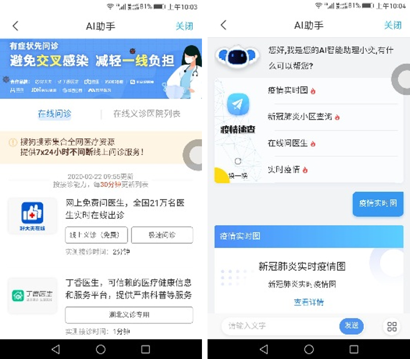 此外,现代教育技术中心还在会同学工部门,测试AI助手防疫专版,通过语音、文字向“机器人”询问,实现在疫情防控期间常见医学问题回答、疫情速查等功能;并对接“好大夫”、“丁香医生”、“春雨医生”等平台,提供在线问医支持,有效缓解学生返校带来的咨询、答疑压力;疫情结束后,还可继续提供校园学习生活场景常用问题问答等服务,成为学生校园生活的行动指南。图书馆入馆预约、学生进出宿舍的有效体温登记等功能也在开发中。