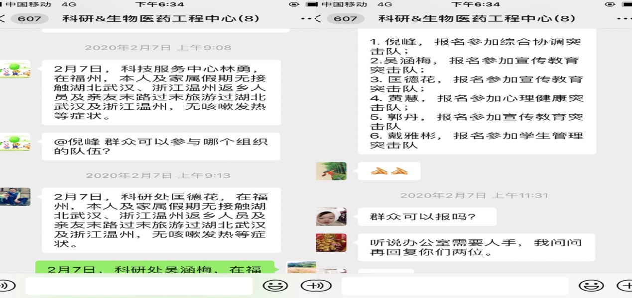 在抗“疫”一线的不只有党员,志愿队成员里还有我院管理系的唐恒宥老师以及科技服务中心的林勇老师和张月芬老师,2月6日党员们纷纷加入疫情防控突击队的时候,他们也很着急地询问“群众可以加入哪个团队”,在两次免洗手消毒液的生产工作中,3位老师充分发挥了个人所长,能为师生们服务让他们感到非常高兴。