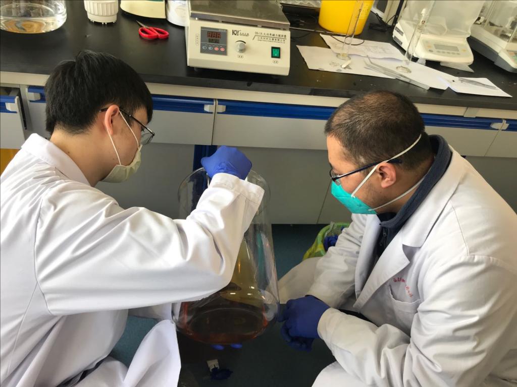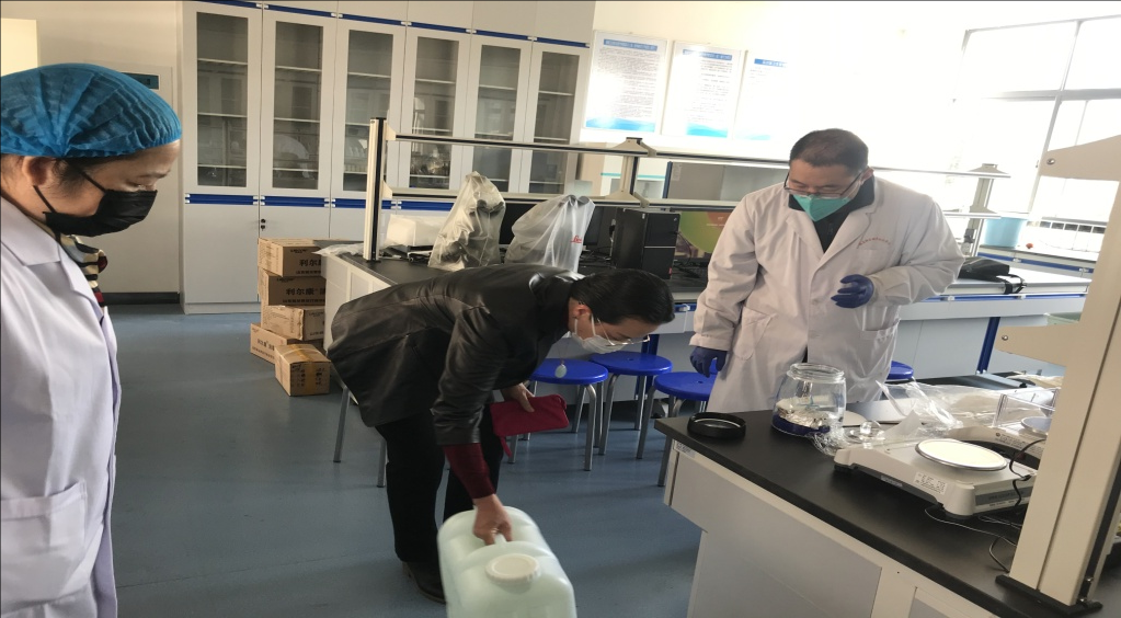 酒精是免洗手消毒液中重要的原材料之一,特殊时期疫情防控物资非常匮乏,药学系肖健主任得知这个首要难关后,联系了与学院的合作伙伴——新紫金药业有限公司,企业在自身库存不多的情况下,二话不说就协调并派人送来了10瓶500毫升的医用酒精,这份及时的温暖真是解决了大问题。