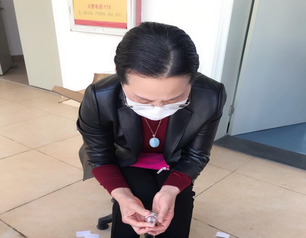 守护师生生命健康安全,是我们义不容辞的责任,从“免洗手消毒液”志愿队的成立到协调生产各环节问题,郑翠红副院长都非常关切,她亲自到学院实训楼的消毒液生产现场,认真查看生产消毒液的原材料,听取生产具体过程的介绍。看到贴标签的老师们直接盘腿坐地上,她一边询问大家地上凉不凉,提醒一定要注意保暖,一边也坐下来乐呵呵地跟大家一起贴标签。