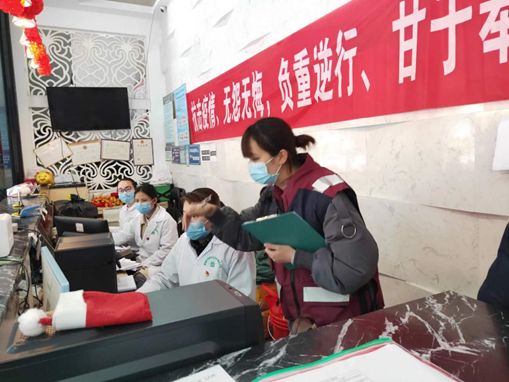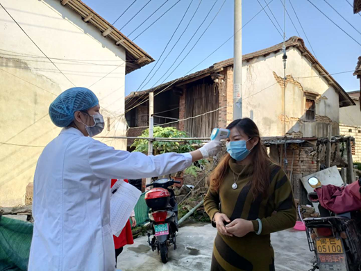 预防班周银华(左二)参与外来人员复工体温检测工作