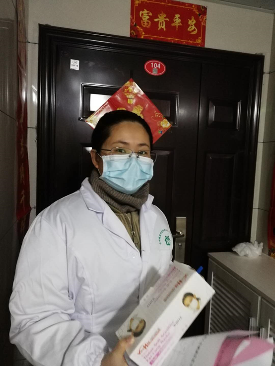预防班赖思佳(中间)参与居家隔离人员体温测量及健康教育工作