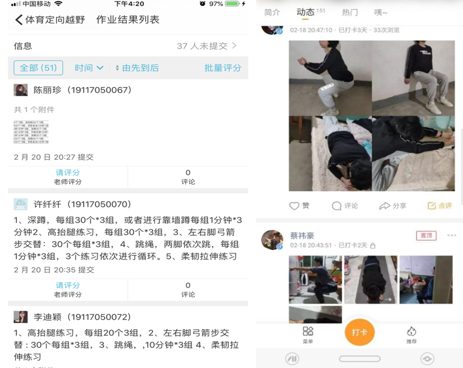 面对“隔空”教学,体育教研室教师及时推出了运动“打卡”,确保学生宅家也能动起来。