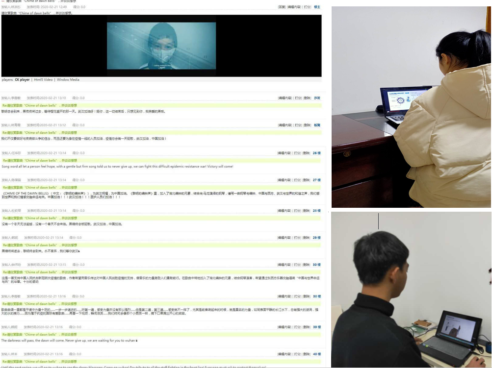 危急时刻也是教育的最佳时机。卢丛珊和林洪杉两位年轻的党员教师,勇担重任,积极献计献策,利用多种英语学习资源(英语新闻、宣扬抗击疫情的英文歌曲、趣配音等),在天使之城学习平台上,与学生们积极互动。通过英文歌曲、趣配音等大家喜闻乐见的形式,向学生宣扬正能量,在他们心中植入作为医学生,要无愧于时代担当的信念。通过英语,教会学生向世界发声,中国有战胜疫情的实力和信心。学生们积极参与学习,观看英语视频,学唱英文歌曲,了解冠状病毒的传播途径和预防方法,在评论区里热烈讨论,表达了向前辈看齐,年轻一代勇于担当,坚信中国人民能战胜疫情的情怀。