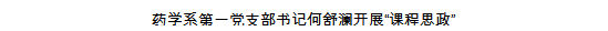 “组织支部教师党员开展‘课程思政’是我们样板支部的一项重要工作,特别是‘双带’履职以来,更强调党员要结合自身专业优势开展课程思政,重视思政教育的自然融入,力求做到如盐入水,润物无声。”药学系第一党支部组织委员陈钰老师说。