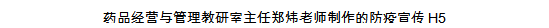 “这段时间在线教学中开展的‘课程思政’基本达到预期效果,后续将总结提炼,在支部内进一步推广。”药学系第一党支部书记何舒澜老师表示,此前支部委员已针对如何组织教师开展本阶段课程思政进行了专题研讨,而支部党员近期制作的一批疫情防控H5,则为“课程思政”的开展提供了丰富的素材,为在线教学融入思政元素提供了保障。