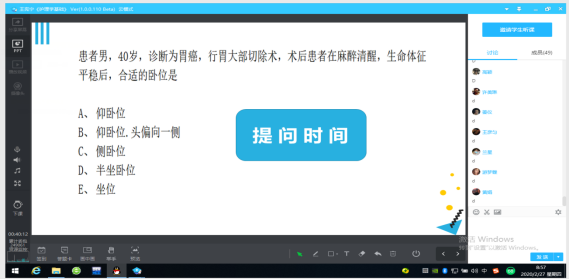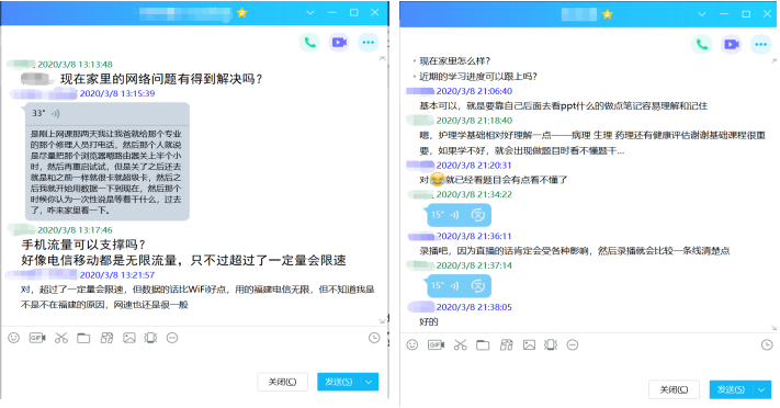 支部党员教师利用qq、微信等平台开展线上教学集体备课,充分探讨如何实施线上教学及遇到异常情况的处理措施。为保证线上教学的质量,积极响应“停课不停学、离校不离师”的国家号召,支部党员教师利用寒假时间,积极完善最新版《护理学基础》的课件、题库、思政案例等资源,精心设计在线教育教学课程,通过线上课前预习、课中直播、答疑及课后复习的线上教学计划安排学生有效预习复习。