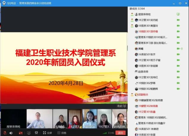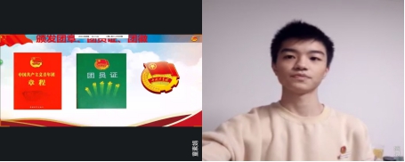 经团组织批准,介绍周鑫宇等240名同学加入中国共产主义共青团,新团员们接受各系团总支书记、副书记为他们进行一次“特殊”线上佩戴团徽及颁发团章、团员证。