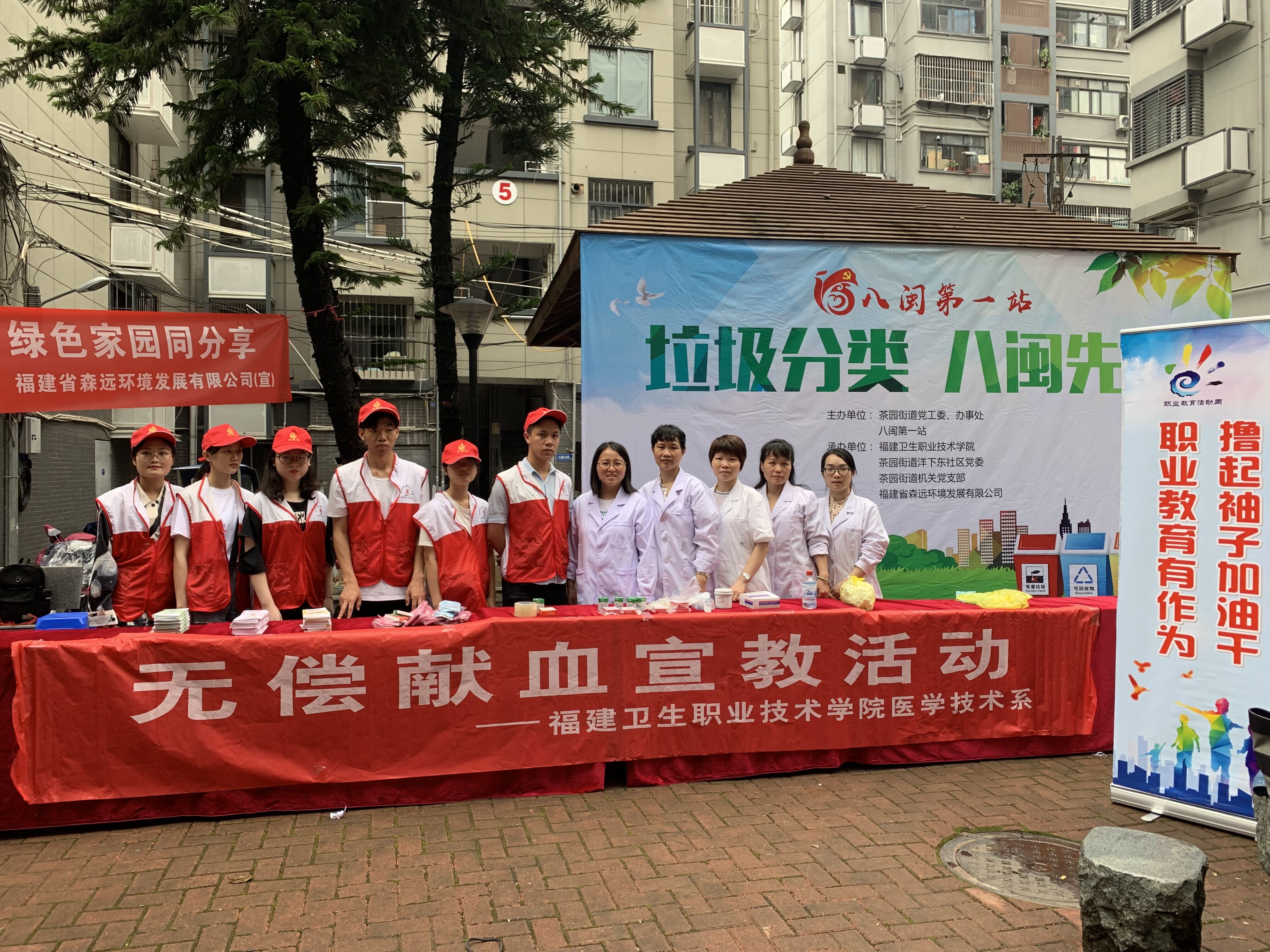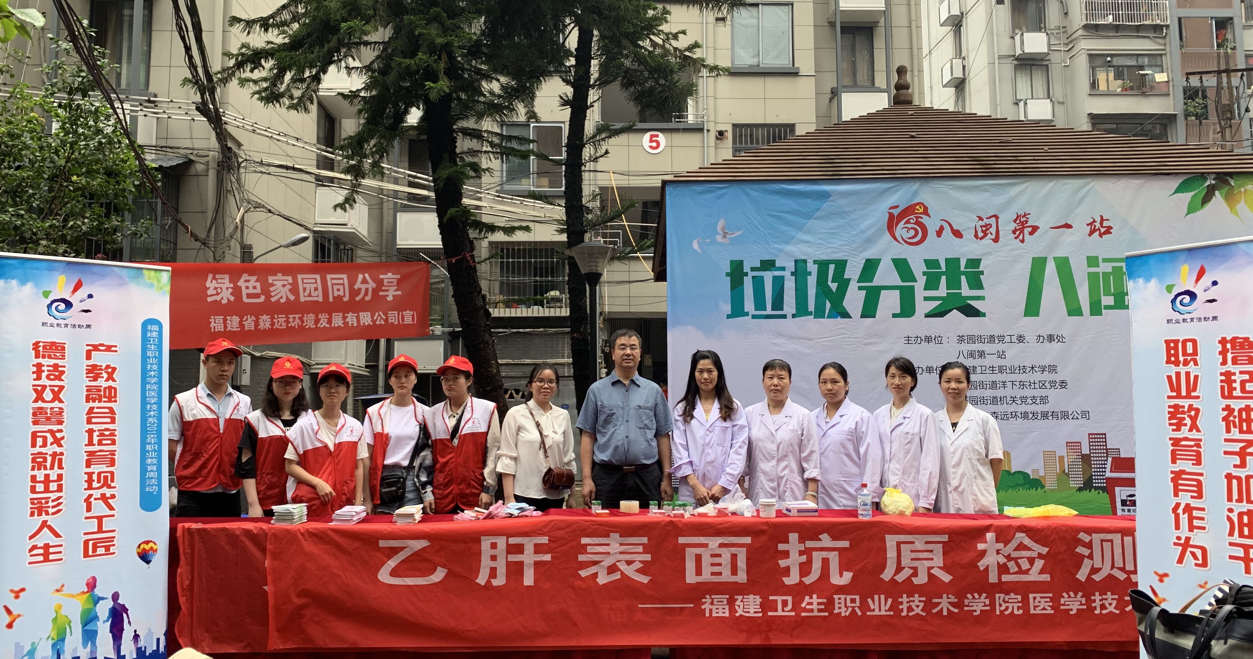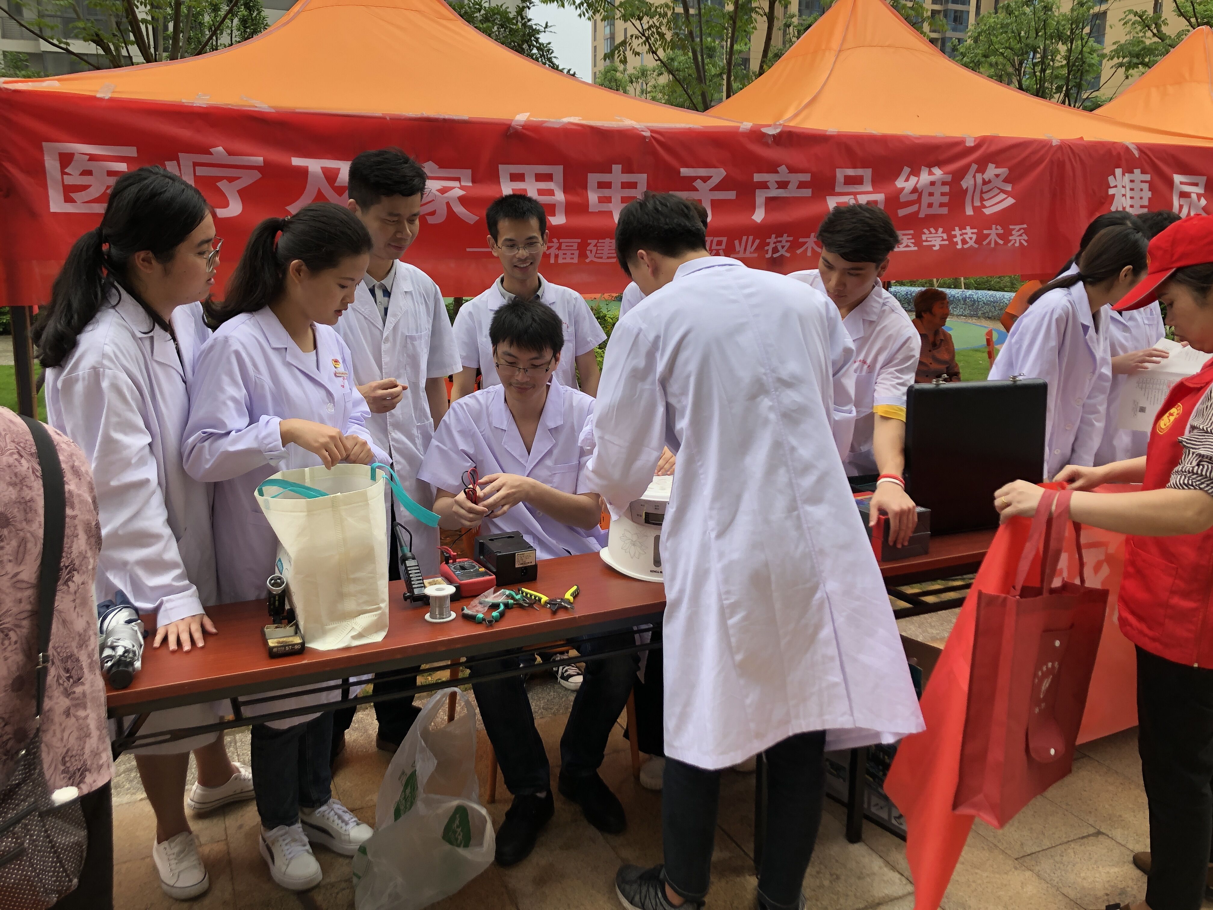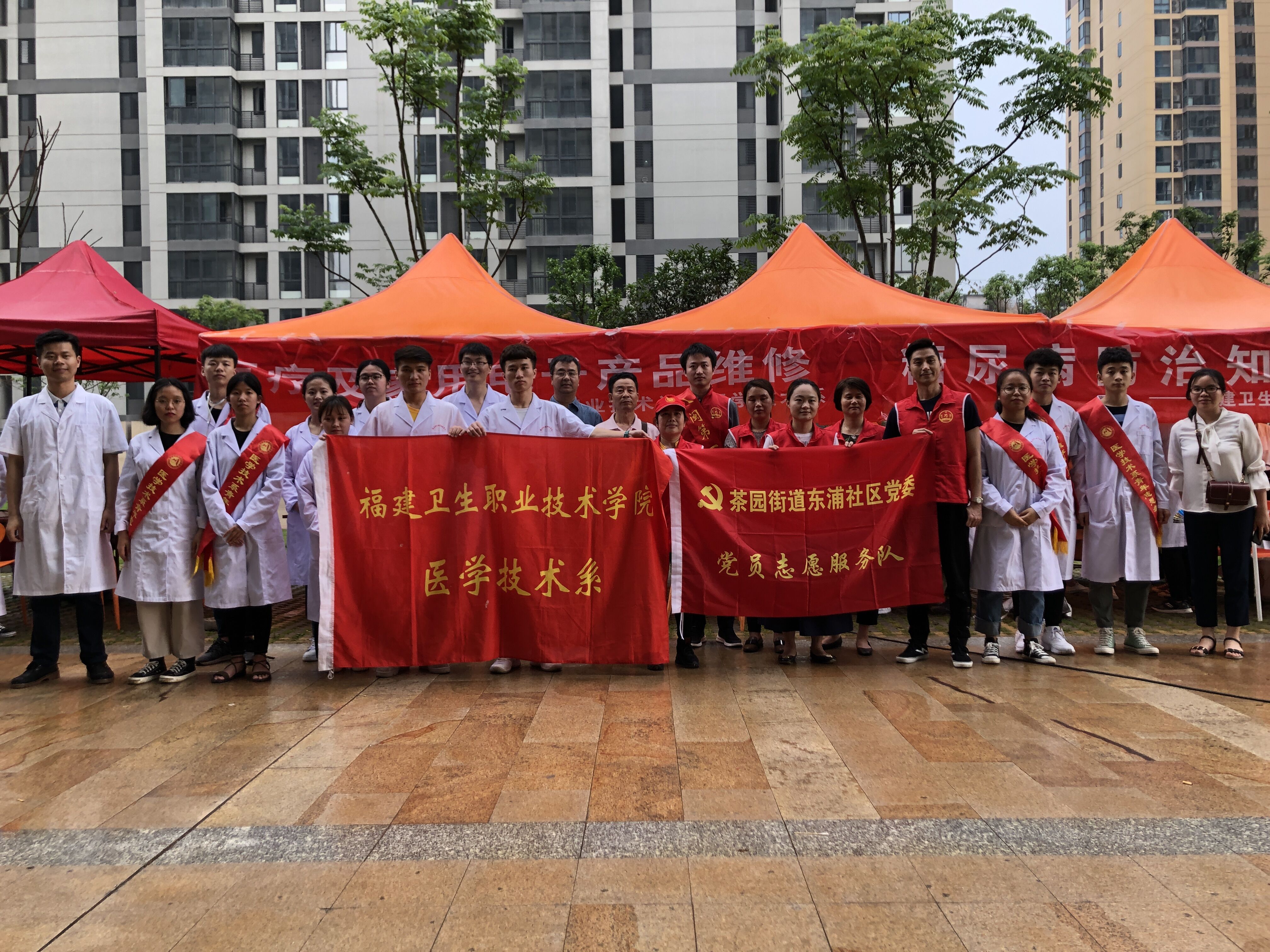 为积极响应2019年全国职业教育活动周的号召,充分展示我院办学特色和成果,发挥我院医学职业技能优势,推动“两学一做”学习教育活动常态化制度化,充分发挥基层党组织战斗堡垒作用和党员的先锋模范作用,以“迎祖国七十华诞 展职教时代风采”为主题,医学技术系党总支组织25位专业教师(其中,教师党员19名)带领48名学生(其中,学生入党积极分子39名)于2019年5月16日前往医技系共建合作单位福州市晋安区茶园街道所属的洋下东社区洋下花园小区和东浦社区开展6项职教活动。