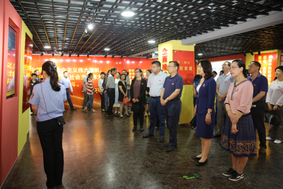 参观活动伊始,全体党员在党委工作部部长吴华同志的带领下集体宣誓,重温入党誓词。继而在讲解员的引导下先后参观了“不忘初心”“挺纪在前”“法网恢恢”“典型案例”“贪腐之鉴”等五个反腐倡廉警示教育展厅,认真听取讲解,了解近期国内发生的贪污腐败大案要案和我省发生的典型腐败案件,观看落马官员忏悔语录,全体人员接受了深刻的思想洗礼。