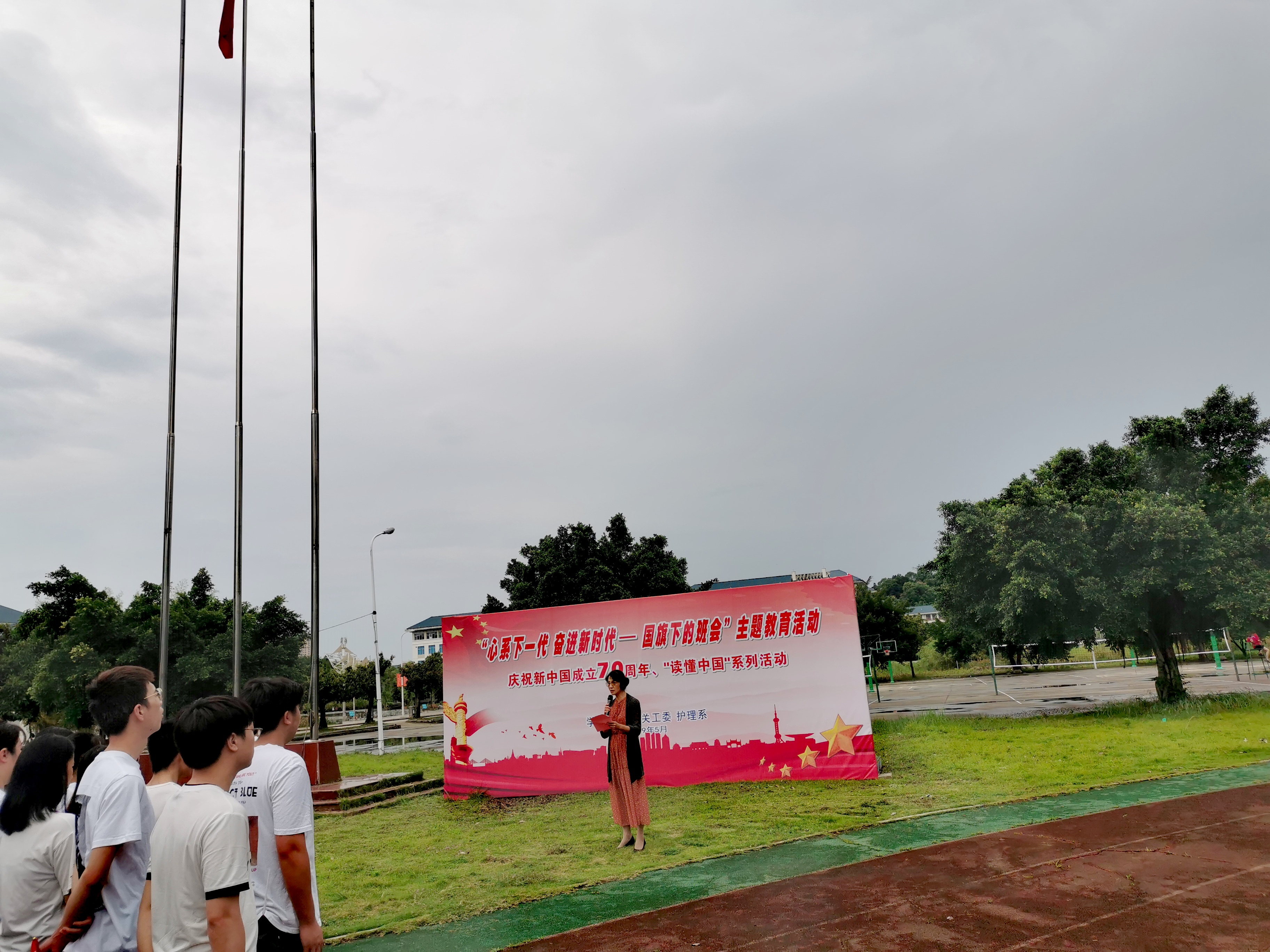 在随后国旗下的班会上,首先由护理系带班辅导员张天文做主题教育,通过庄严而又隆重的升国旗仪式,表达我们对祖国的热爱,对国旗、国徽的崇敬之情。关工委刘珍红老师在国旗下讲话,她强调,青年学子要读懂新中国成立70年来的伟大成就;读懂中国共产党的领导核心和中国特色社会主义的道路自信、理论自信、制度自信、文化自信;希望同学们坚定“四个自信”,秉承南丁格尔“人道,博爱,奉献”的红十字精神,遵守“业精德诚”的校训,做一个胸怀天下、与祖国共命运的有为新青年。