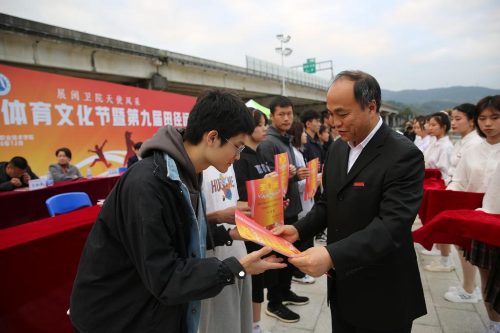 许能锋致闭幕词,他提到,这届体育文化节、田径运动会充分展示了我校师生积极进取、奋发向上的精神风貌,展示了我校体育健儿自强不息、团结协作的时代风采。希望全校师生勠力同心、群策群力,以更加强健的体魄、更加旺盛的精力、更加顽强的意志,致力“健康福建”、服务“健康中国”,为我校高水平职业院校和专业建设,为我校科学发展、跨越发展、高质量发展,持续贡献力量!