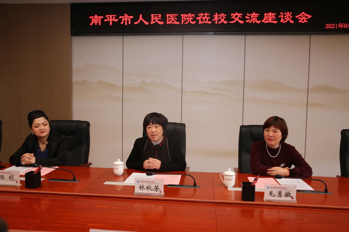 郑翠红代表学校向南平市人民医院领导的来访表示热烈欢迎,她简要介绍了学校的办学历史、办学情况等。林秋芳也介绍了南平市人民医院的概况。会上,双方就合作办学模式、人才培养等方面进行了探讨和交流,希望本着供需契合、优势互补和同向发展的原则,能够进一步加强校院合作,让学校培养的中医学人才更好地服务于地方医改事业。